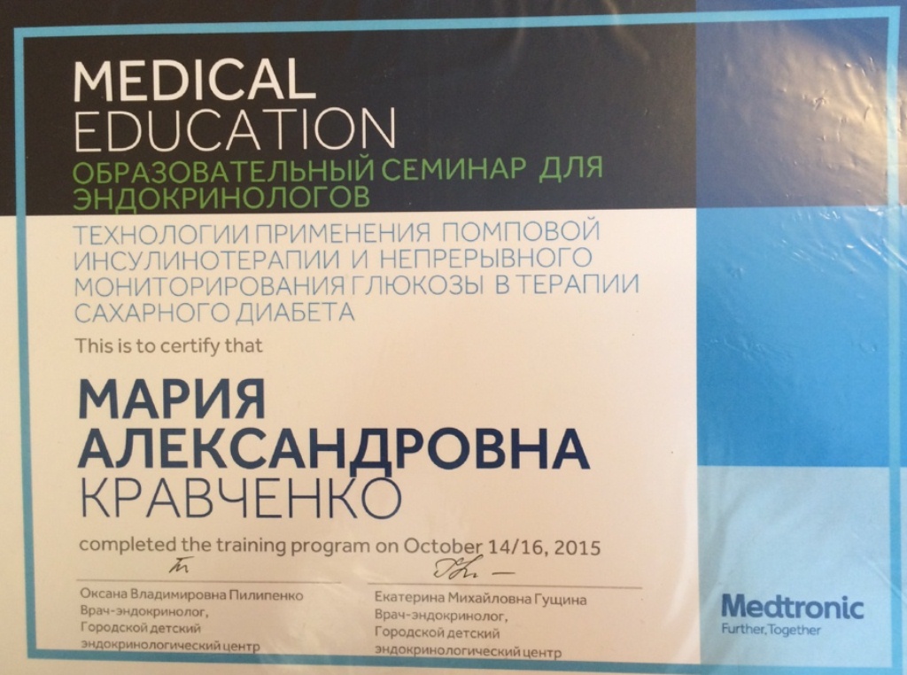 2012 Новосибирский государственный медицинский университет, диплом по специальности "Эндокринология"