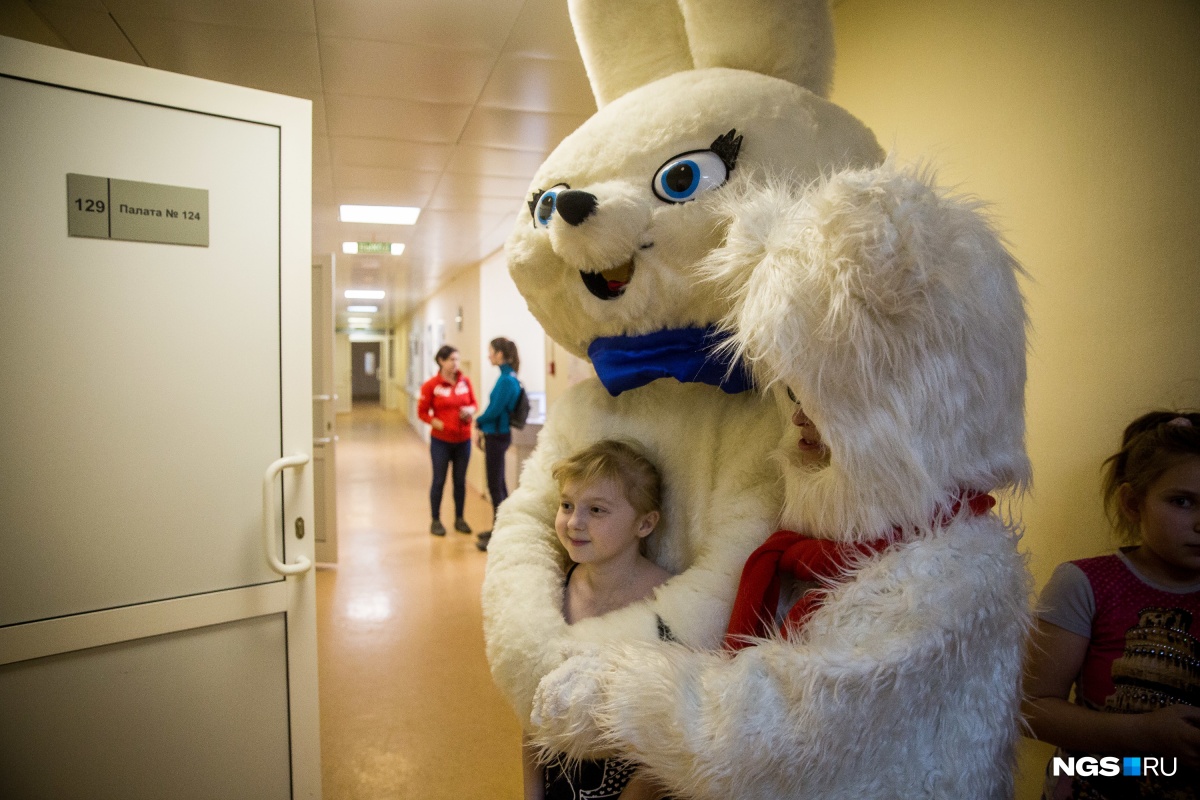 На двух грузовиках с гирляндами и новогодней музыкой приехали аниматоры в костюмах оленей, белых медведей и снегурочек. Сотрудники компании прошли по детским отделениям и подарили маленьким пациентам подарки.
