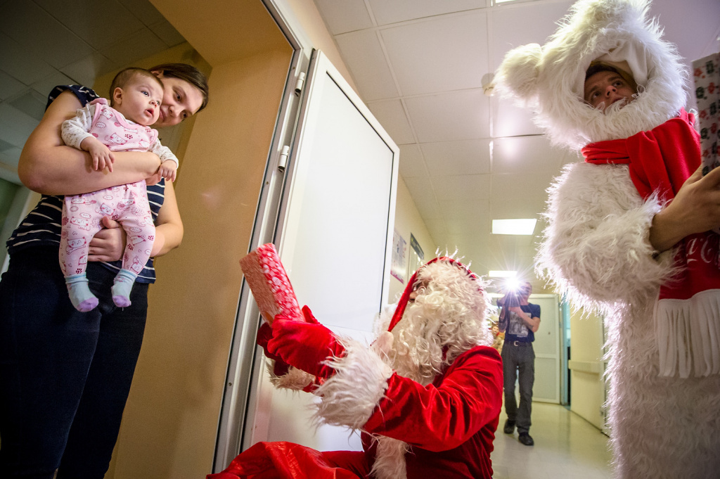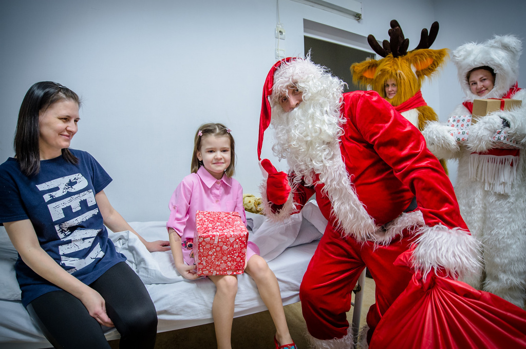 Дед Мороз привез подарки малышам, оказавшимся в больнице перед праздниками.